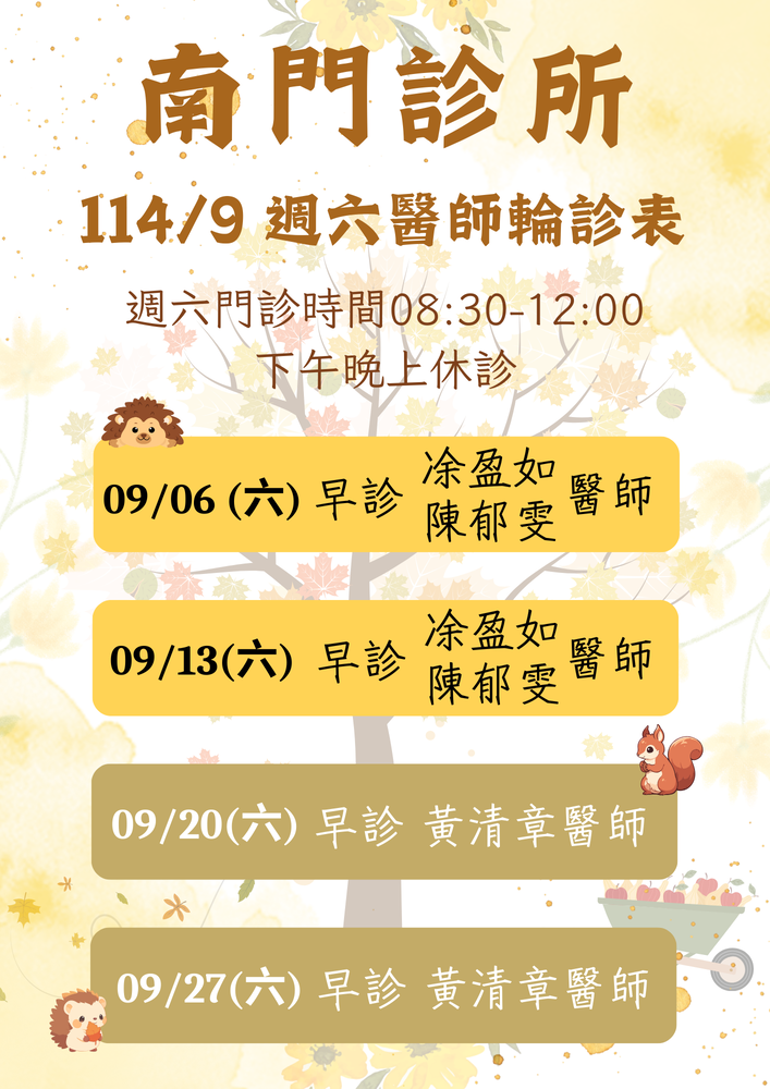 114/09/19及09/26黃清章醫師休診公告