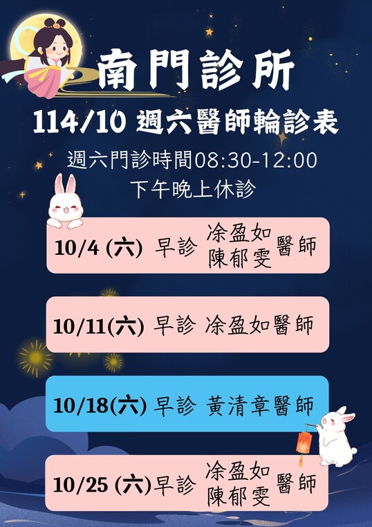 114/10週六醫師輪值表
